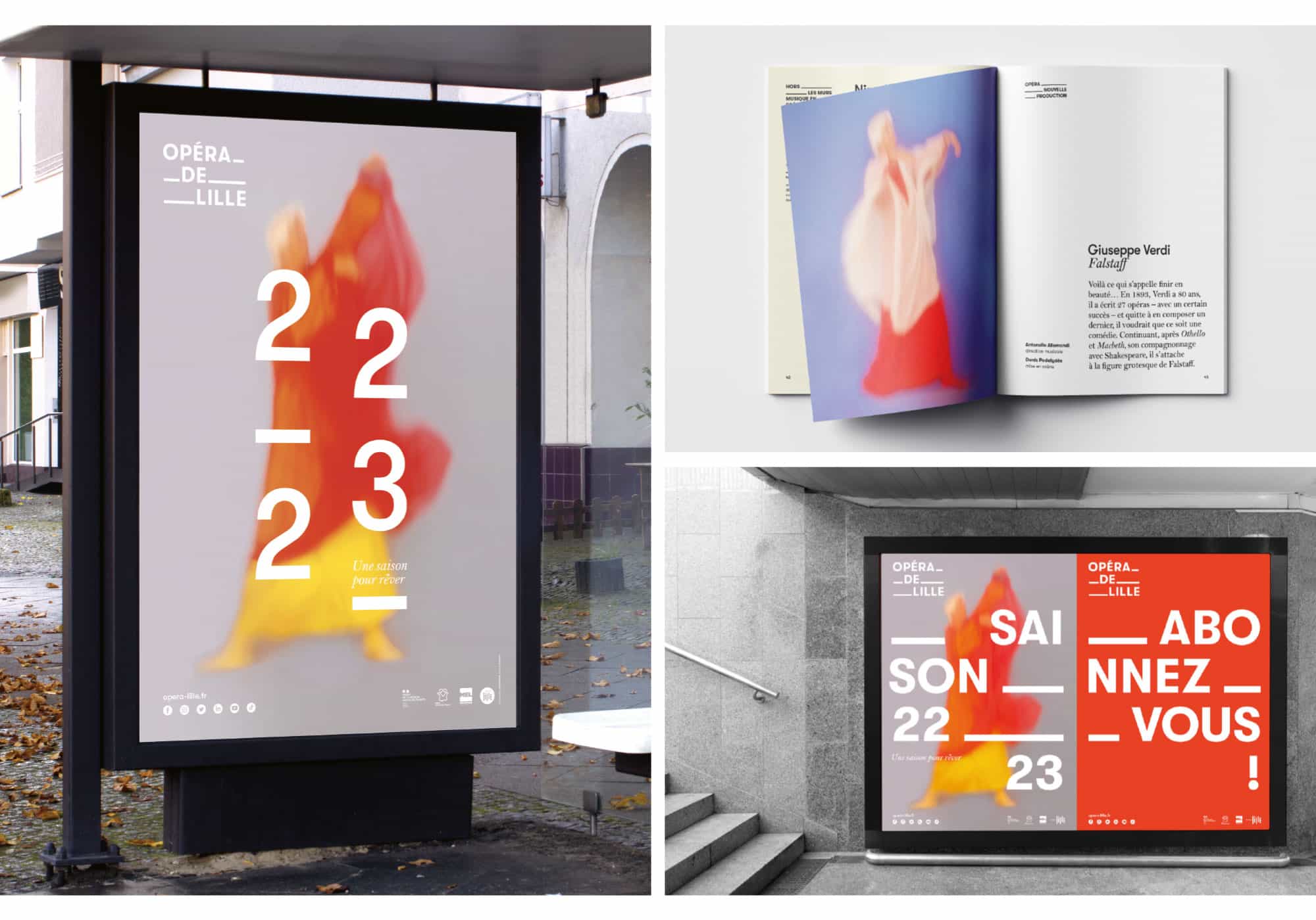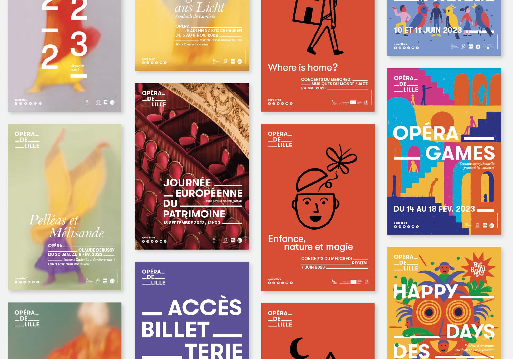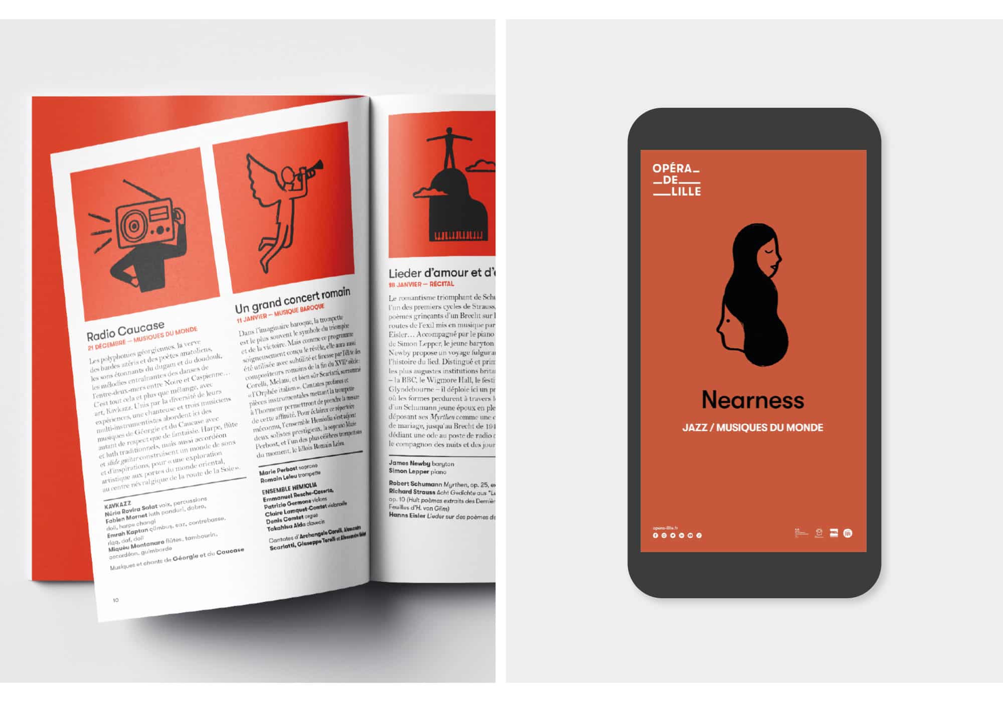 Alors quand se profile le renouvellement du marché de communication et design de cette maison, on a clairement envie d’en être. Le cahier des charges insiste sur la responsabilité sociale et environnementale, ce que nous traduisons en trois actions structurantes : la reprise et l’optimisation de leur identité graphique existante d’abord ; l’utilisation de ressources iconographiques issues de collections existantes d’artistes ensuite ; une meilleure distinction des offres à destination des publics, grâce à la mise en place de registres visuels plus contrastés enfin. Une fois n’est pas coutume, notre projet est retenu tel quel, appliqué tel quel.