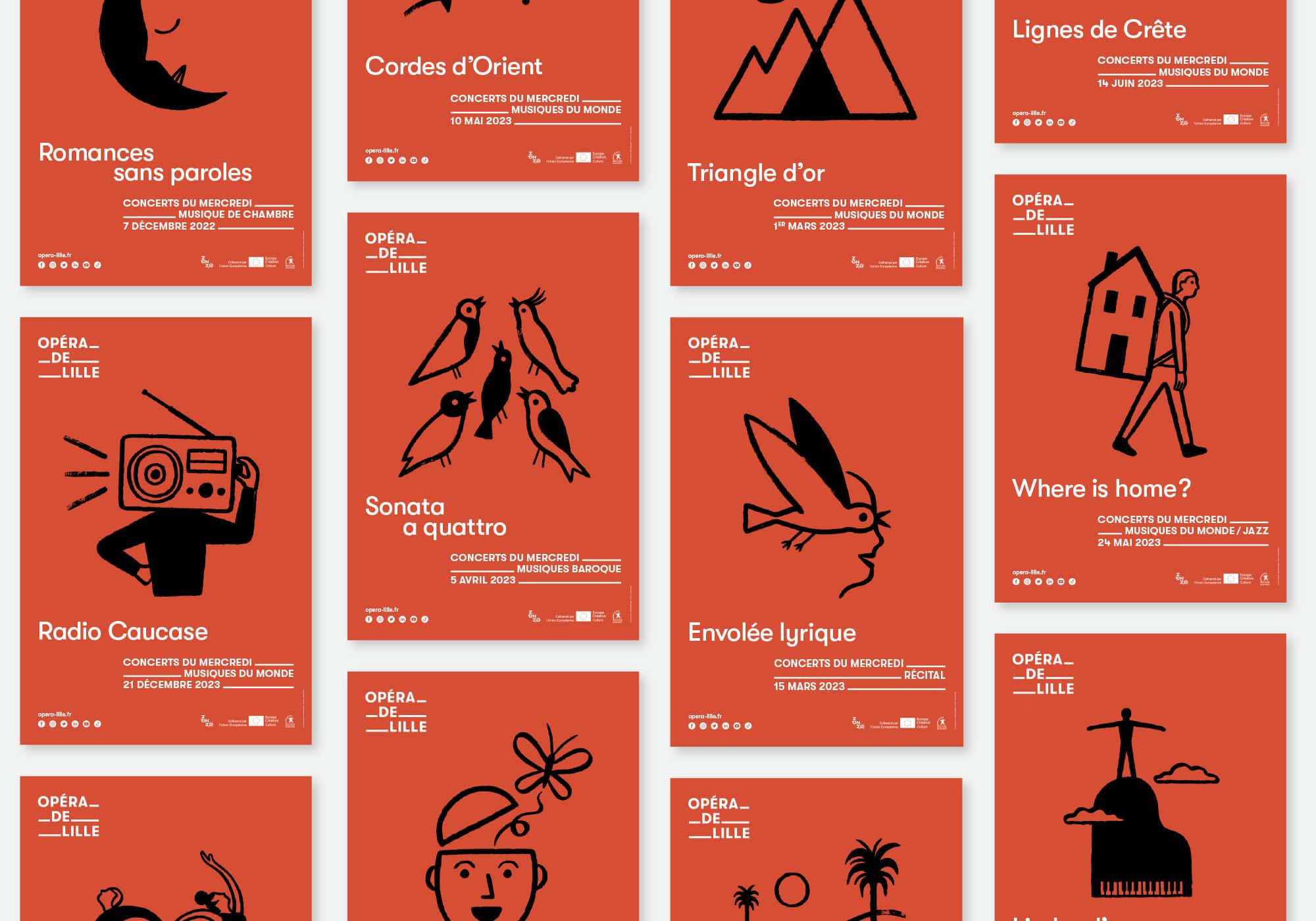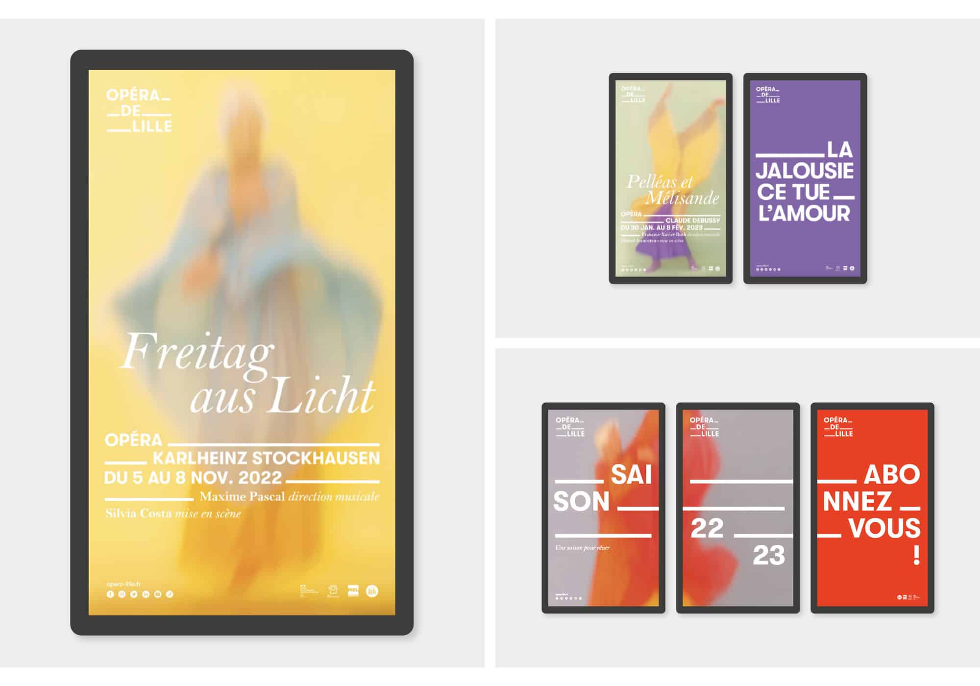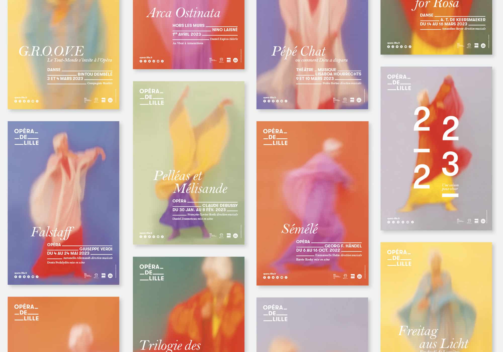 Alors quand se profile le renouvellement du marché de communication et design de cette maison, on a clairement envie d’en être. Le cahier des charges insiste sur la responsabilité sociale et environnementale, ce que nous traduisons en trois actions structurantes : la reprise et l’optimisation de leur identité graphique existante d’abord ; l’utilisation de ressources iconographiques issues de collections existantes d’artistes ensuite ; une meilleure distinction des offres à destination des publics, grâce à la mise en place de registres visuels plus contrastés enfin. Une fois n’est pas coutume, notre projet est retenu tel quel, appliqué tel quel.