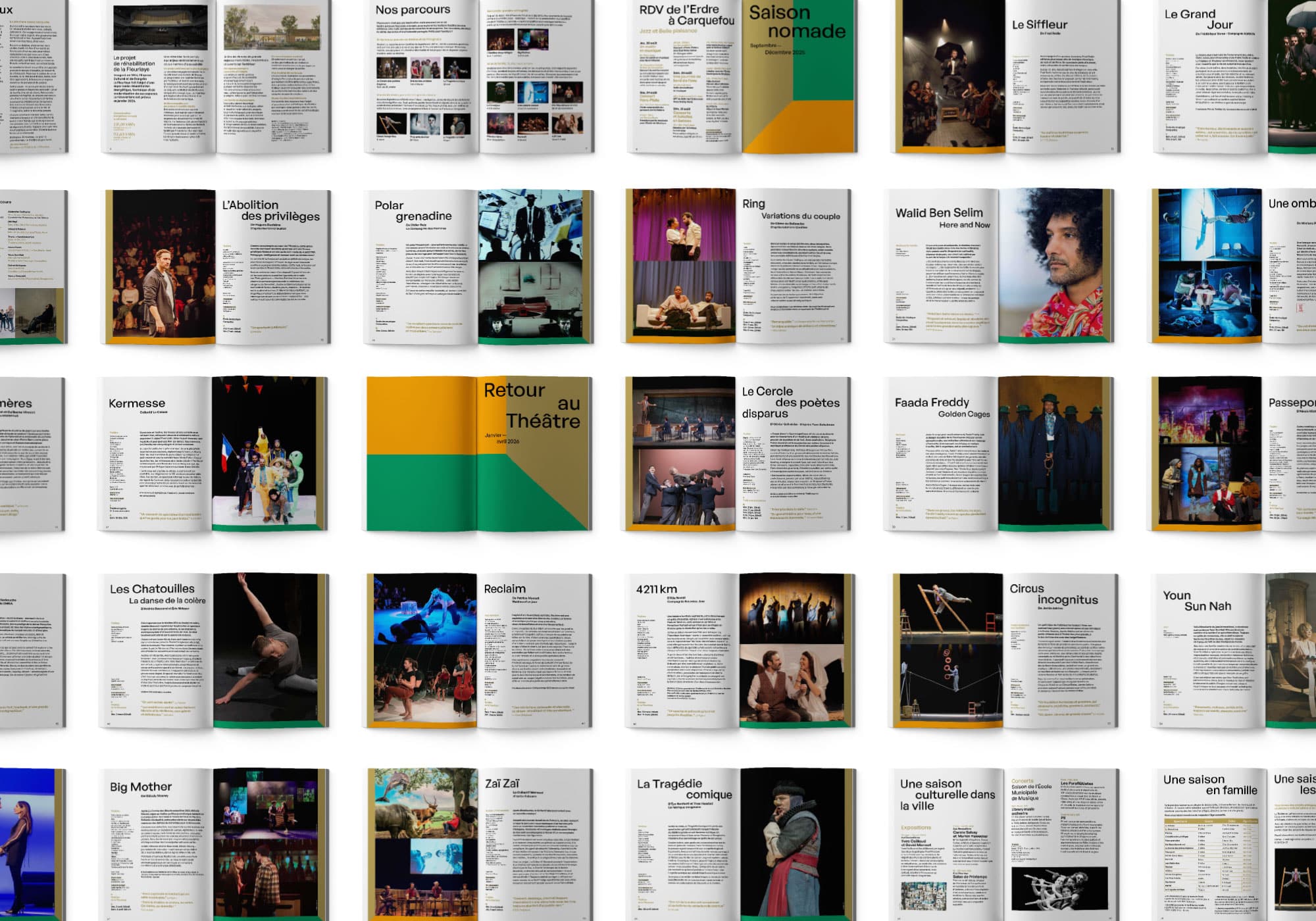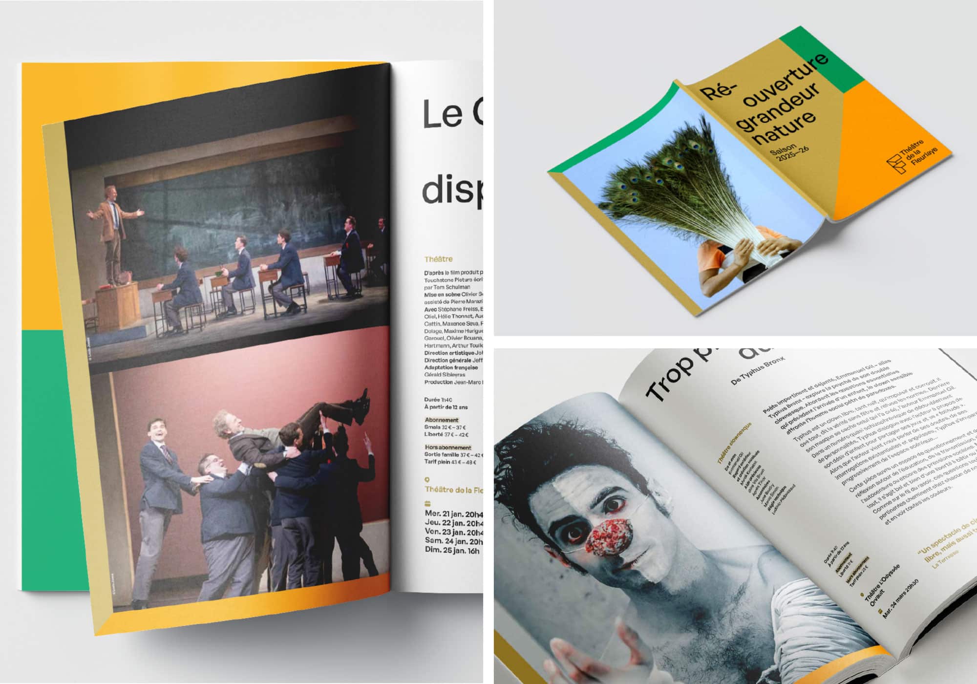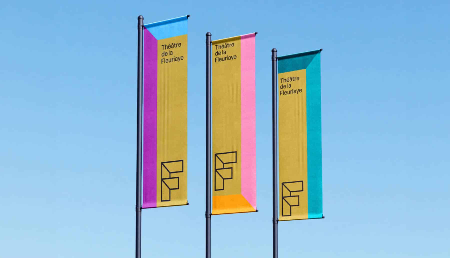 Le nouveau logotype qui accompagne la renaissance du théâtre de la Fleuriaye à Carquefou s’inspire d’un motif récurrent du bâtiment, un cadre aux bords biseautés qui fait office d’ouverture, comme une fenêtre entre l’intérieur et l’extérieur du lieu. Un motif dont l’écho se répercute dans la brochure et les affiches de spectacle. Pour le visuel de saison, nous avons opté pour une photographie d’Ismail Ferdous au réalisme poétique, flanquée d’une accroche maison.