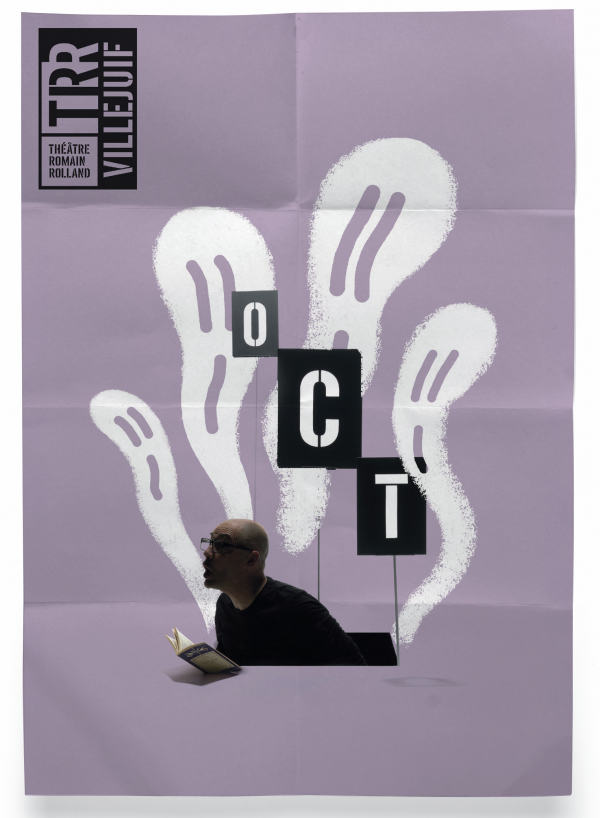 Plateau Une fois l’an, ce n’est pas un spectacle qui installe son décor sur la scène Églantine du Théâtre Romain Rolland. Du moins, pas un spectacle ouvert au public. Durant trois jours, le plateau se transforme en une machine à produire des visuels, en direct : typographie sur pied, comédiens acrobates, photographes et graphistes concentrés s’y retrouvent. Maya Latrobe, secrétaire générale du TRR, ne se cache pas de raffoler de ces moments créatifs spontanés et généreux, auxquels elle apporte toujours sa touche.